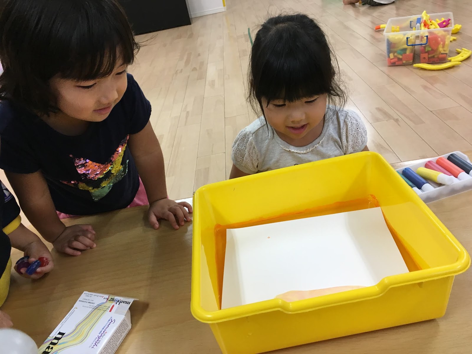 すると・・・じわ~っと広がっていく魔法の絵の具に「すご~い!」「おもしろい!」と興味津々な様子のたんぽぽさん🎶